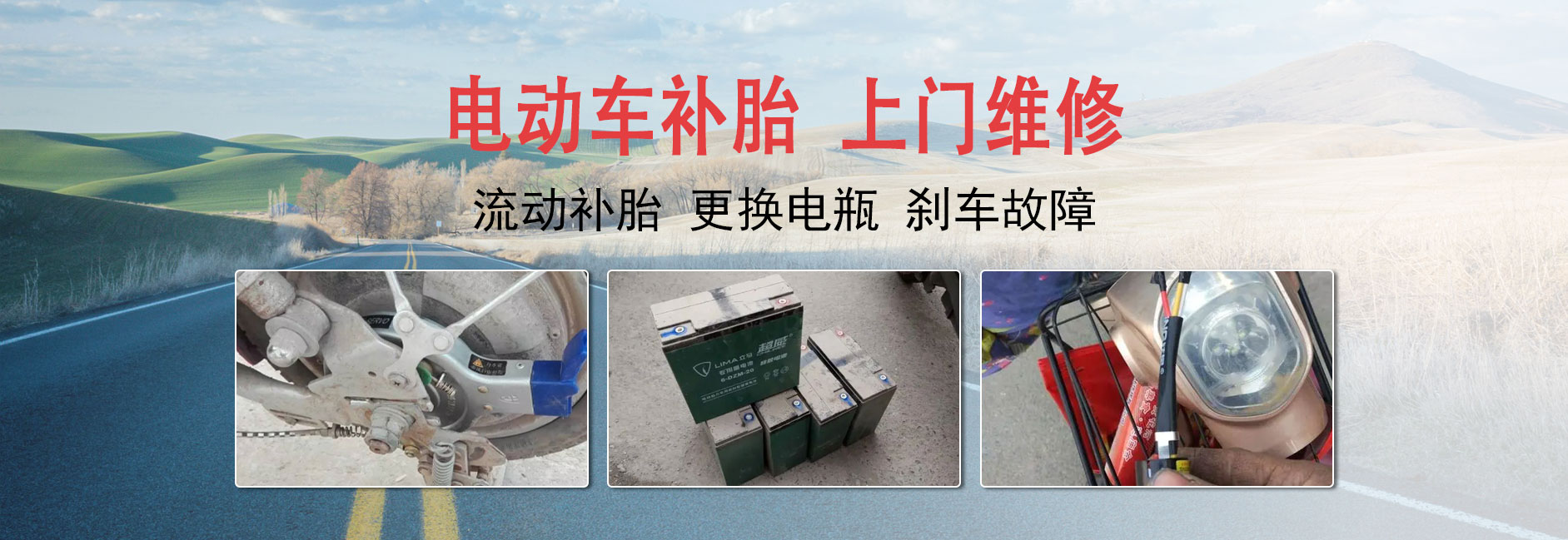 我们是一家专业从事丹东电动车上门维修、丹东电动车补胎换胎、丹东电动车换电瓶、丹东电动车刹车维修、丹东电动车电路检修、丹东三轮车救援的电动车维修服务公司,已从事电动车维修服务行业多年。得到了广大客户的一致好评。公司员工都经过严格的技术考核与培训,拥有丰富的电动车维修服务经验,以及时、专业、热情的服务,确保施救工作,快速、专业、安全的完成。做到随时随地地为客户提供全年365天24小时上门维修服务。服务范围覆盖全市各个区域。 公司秉承“用户至上,效率第一”的企业宗旨,全天候24小时待机为您服务。